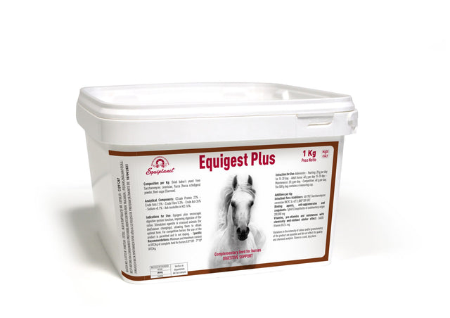 Equigest Plus è un Mangime complementare con lievito vivo.                  Mangime complementare per cavalli a base di lievito vivo che interferisce sulla colonizzazione dei batteri patogeni favorendo invece quelli utili. Equigest Plus contiene Saccharomyces Cerevisiae essiccato che aiuta migliorare l’efficienza dell’intestino del cavallo.