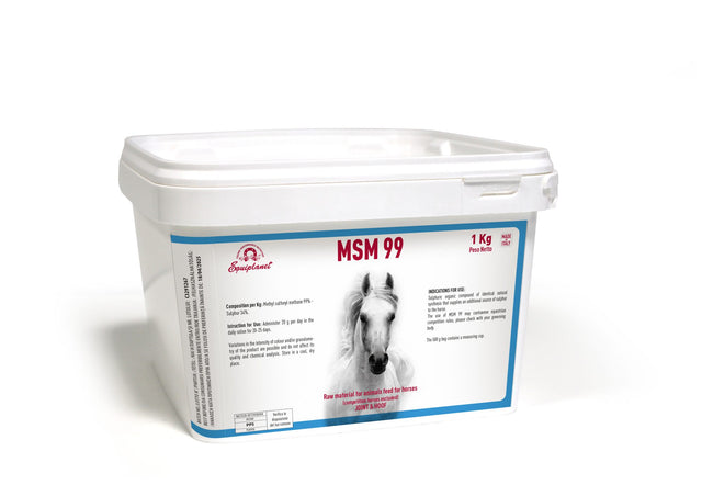 Msm 99 è un mangime semplice che apporta zolfo organico facilmente assimilabile dall’organismo. Lo Zolfo viene utilizzato come coadiuvante in una serie di problematiche legate alla gestione del cavallo sportivo come dolorabilità generalizzata, problemi a carico dell’apparato respiratorio e gastroenterico.